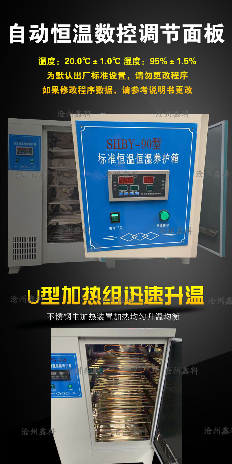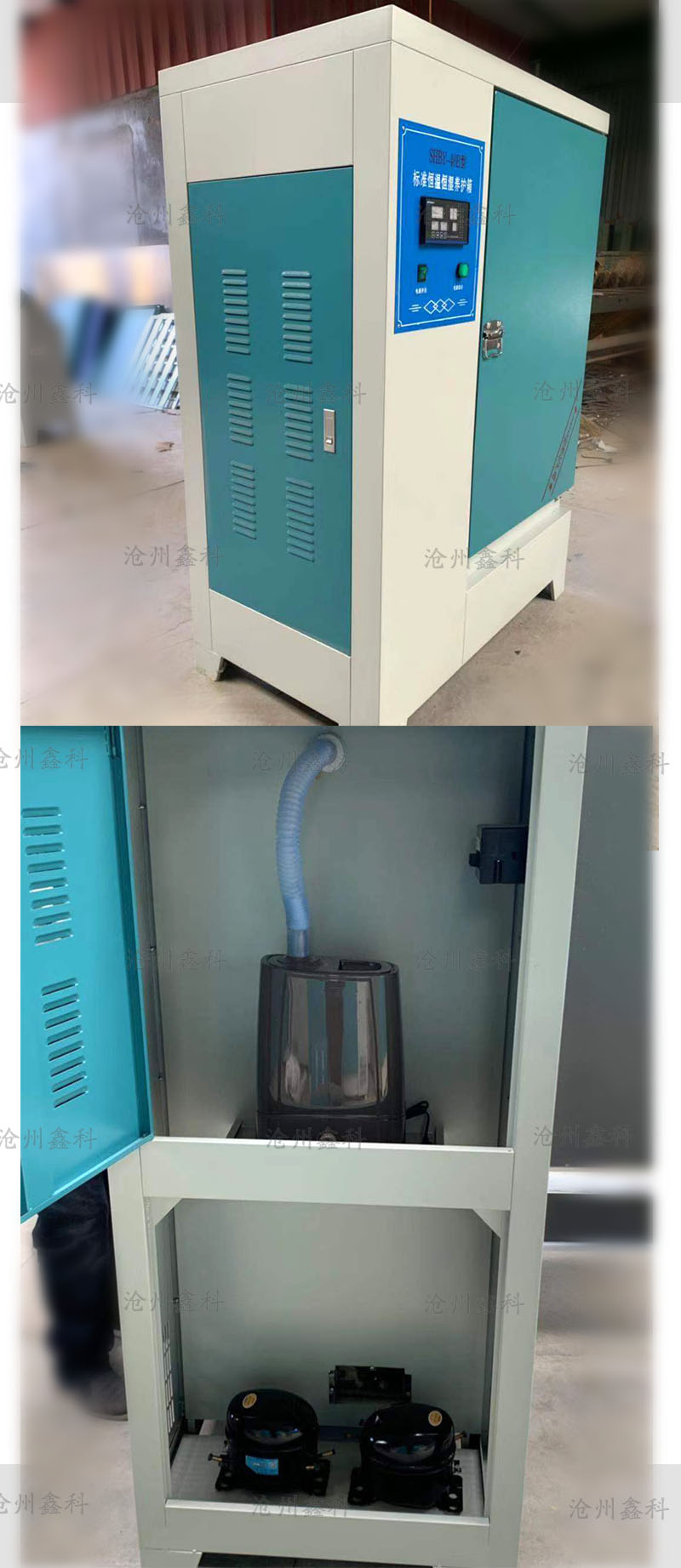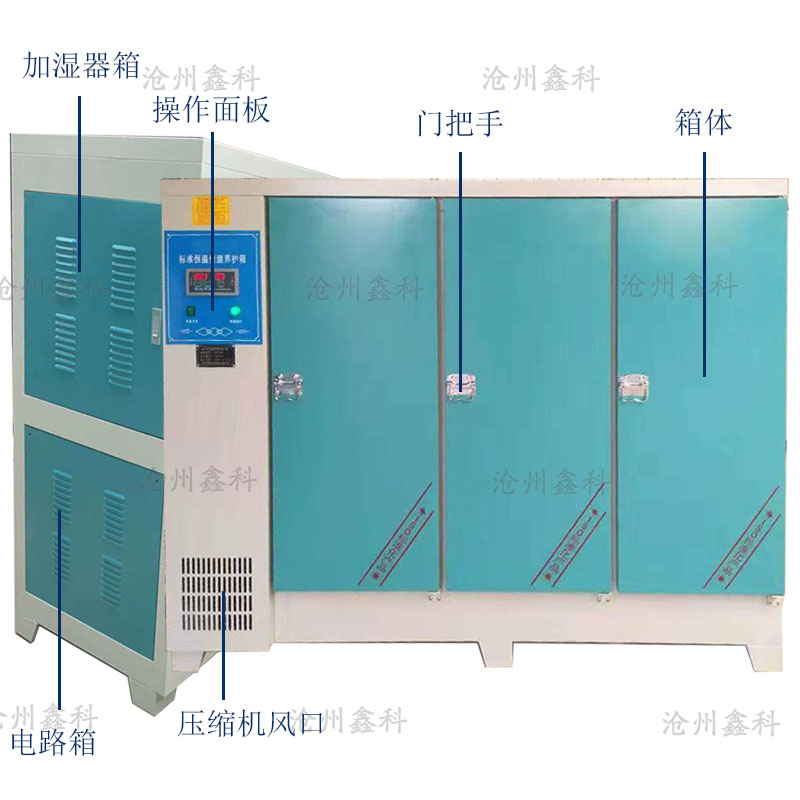 箱體采用內外兩層構成,外箱體采用優質冷軋鋼板,箱內采用耐酸堿的進口不銹鋼板或塑料板組成,隔板采用鋁合金型材制成,防腐蝕性好。內箱體大部分用于加熱及輔助增濕,增濕系統以超聲波增濕儀增濕為主,加熱管加熱為輔,加熱及增濕自動切換,箱內溫、濕度由儀表數字顯示。